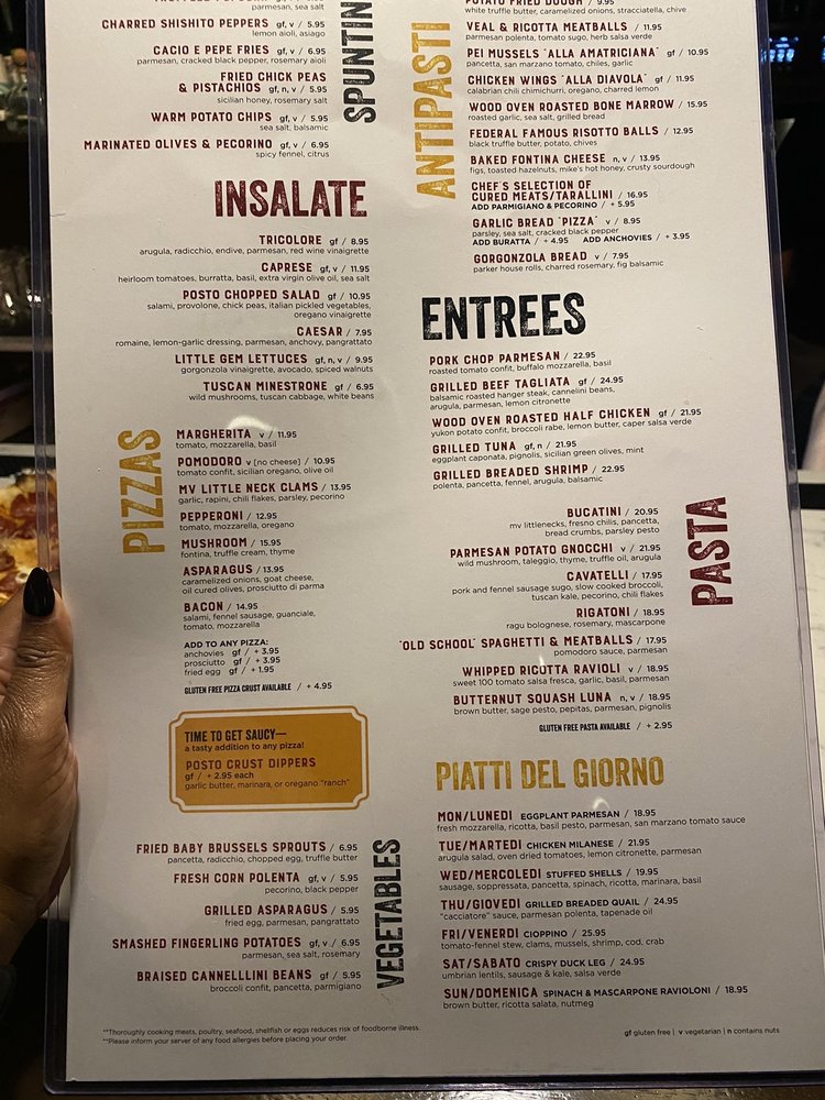 Introducing the menu at Posto Italian, located at 674 Bliss Rd Longmeadow, MA 01106. This Italian bar offers a casual, trendy, and classy atmosphere with excellent amenities such as reservations, delivery, takeout, and catering services. Enjoy their full bar, outdoor seating, and happy hour specials while watching TV or surfing on free Wi-Fi. The menu features a variety of dishes, including risotto balls, steak frites, and pepperoni pizza. Customers rave about the flavorful food, with highlights like the pistachio and chickpea appetizer and the fennel encrusted tuna loin. Although prices are on the higher side, the generous portions and impeccable taste make it worth it. Overall, Posto Italian is a must-visit for Italian cuisine enthusiasts in Western Massachusetts.